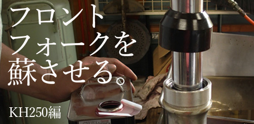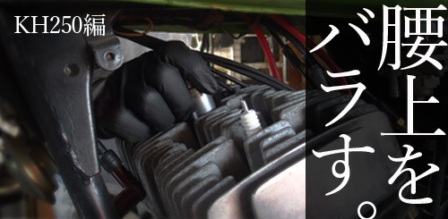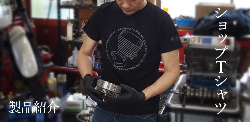 月1〜2回程度、メンテナンスやバイクの情報を発信します。プロならではの極意を惜しげもなく披露いたしますので、ぜひお楽しみ下さい。 #55.Hクラッチハウジングリビルド。H2編 #54.キャリパーピストン。製品紹介。 #53.TIG溶接機アリ〼。アルミフィン溶接編。 #52.TIG溶接機アリ〼3。本番編。 #51.TIG溶接機アリ〼2。まずはDIY編 #50.TIG溶接機アリ〼1。始動編 #49.ポイントカム交換手順。KH編 #48.タンクダンパーラバー。製品紹介 #47.ツーリングレポート。上田城跡公園編 #46.H2エンジン組上げ。点火時期調整編 #45.アウターレースの回転を止めろ。KH・SS編。 #44.リールキーホルダー。製品紹介 #43.ショップTシャツ。製品紹介 #42.H2エンジン組上げ。付帯部品編 #41.H2エンジン組上げ。腰上編 #40.H2エンジン組上げ。腰下後編 #39.H2エンジン組上げ。腰下前編 #38.クランクオイルシール抜け。検証記事 #37.KH用メッキリアフェンダー。製品紹介 #36.オイルPカバーグロメット。製品紹介 #35.プラグ焼けの見極め。KH編 #34.リアホイールハブダンパー。製品紹介 #番外編.ゴリラの帰還。 #33.リアホイール装着。KH400編 #32.リアブレーキシュー交換。KH400編 #31.リアスプロケット交換。KH400編 #30.スポークを張替える。KH400編 #29.リアホイールを外す。KH400編 #28.オイルレベルゲージ製品紹介 #27.オイルタンクフィルター。製品紹介 #26.ゴム工場見学。サカエゴム工業株式会社編 #25.キャリパーO/H。KH250編 #24.クラッチ交換。KH400編 #23.オイル漏れ探求。KH250編 #22.250SS始動。製品紹介 #21.スタンドダンパーラバー。製品紹介 #20.ボイヤーフルトラキット。製品紹介 #19.エアコネパイプ。製品紹介 #18.クランクSリビルドセット。製品紹介 #17.エンジン分解。KH250編 #16.くまがや探訪。グライダー&赤岩渡船編 #15.ステムO/H。350SS編 #14.FフォークO/H。350SS編 #13.ミッションO/H。350SS編 #12.ミッションO/H。350SS編 #11.秋を楽しむ。埼玉県・群馬県編 #10.マフラー脱着。400SS編 #09.オイルを替える。KH250編 #08.日本国籍を取る。H1編 #07.点火を操る。KH250編 #06.FフォークOH。KH250編 #05.マフラーを斬る。KH400編 #04.腰下をバラす。KH250編 #03.シリンダーを計る。KH250編 #02.腰上をバラす。KH250・350SS編 #01.キャブをバラす。KH400/350SS編