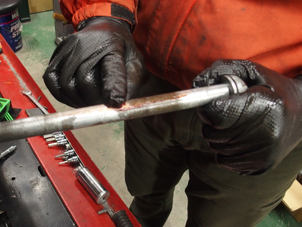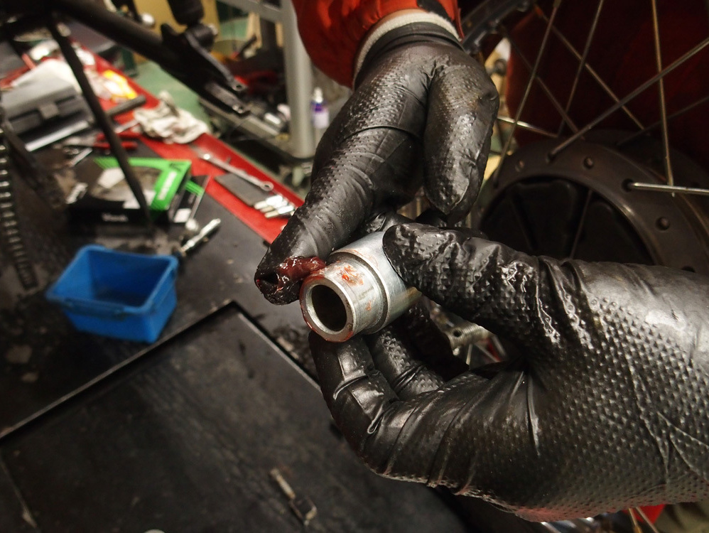 摺動部分には必ずグリスを塗りしょう。バイクメンテの基本です。