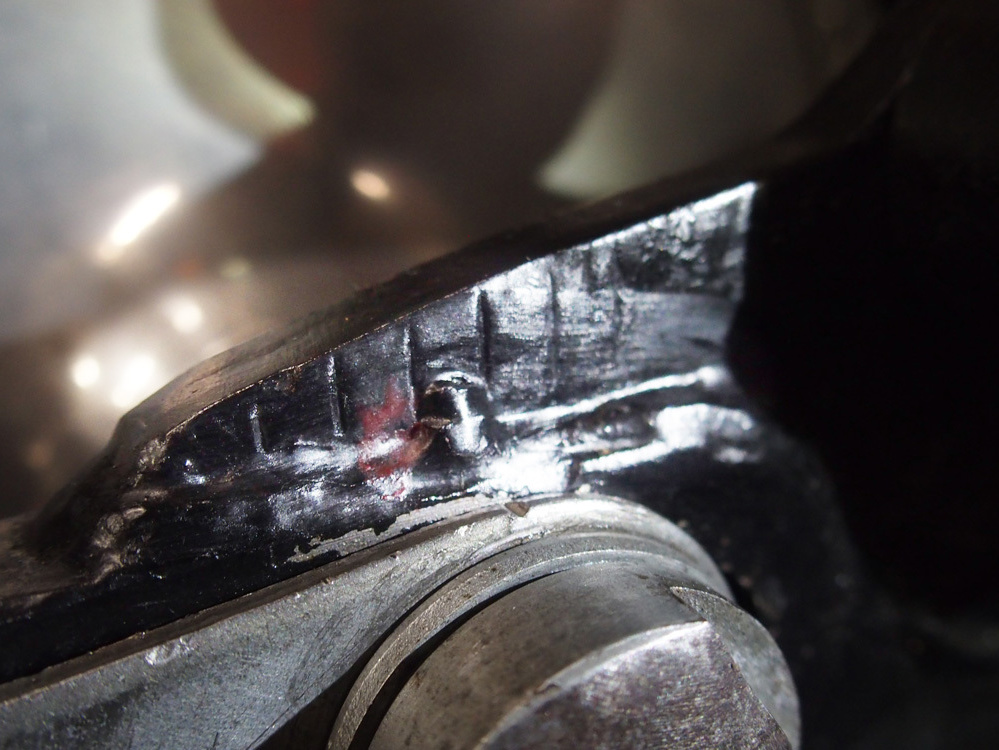 続いてチェーンアジャスター。こちらも罫書きが外側に来るように組みます。