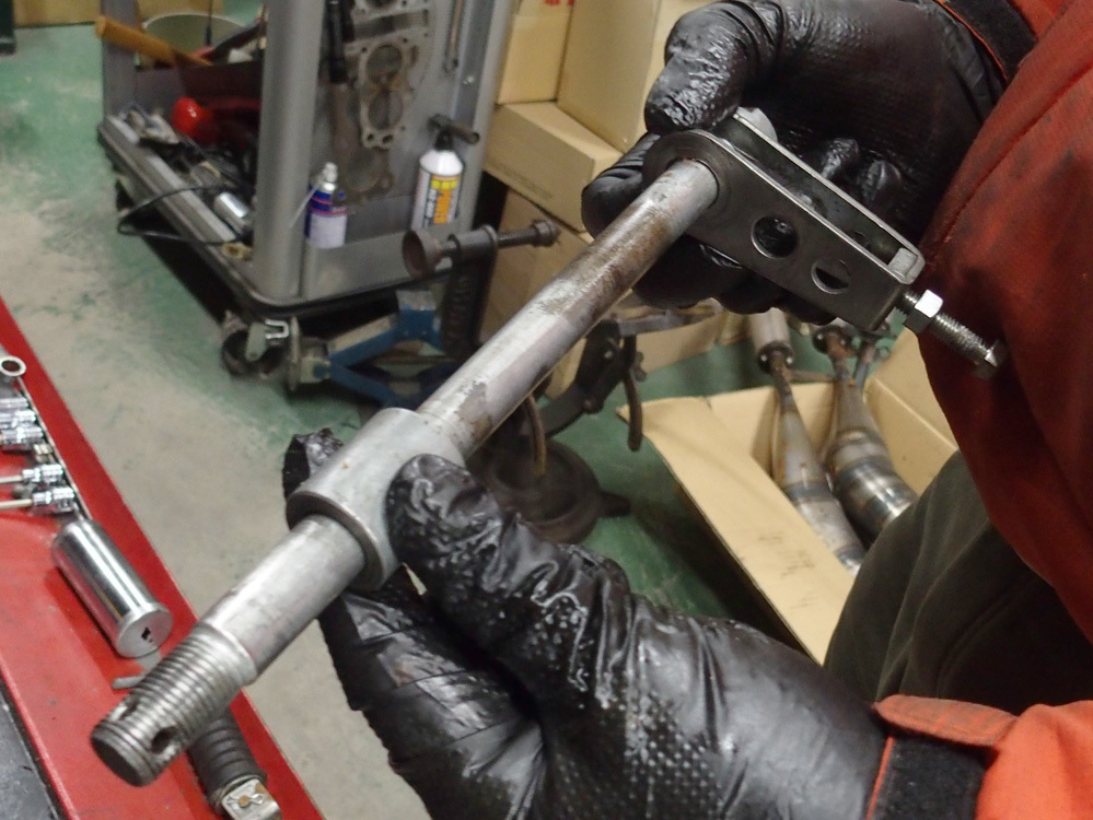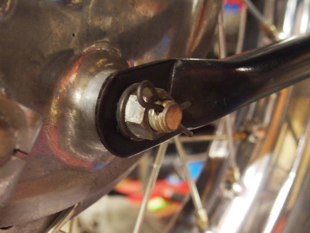 さ〜、いよいよ最終段階に突入!リアアクスルナットに割りピンを差し込んでロック!