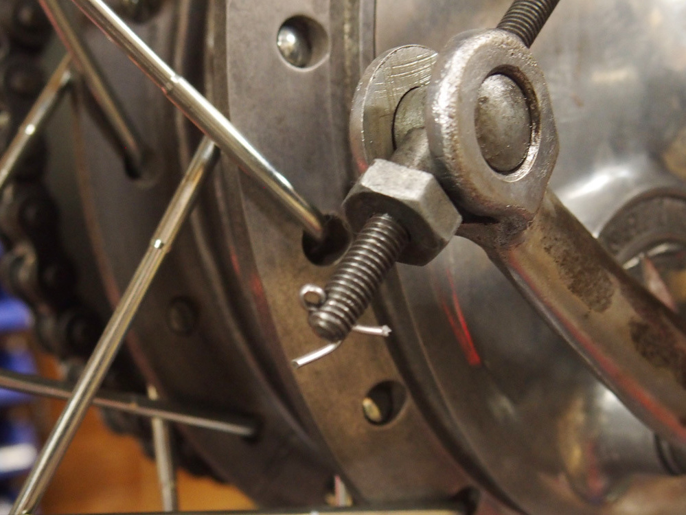 リアブレーキケーブルの先端に割りピンを通すのも忘れずに。