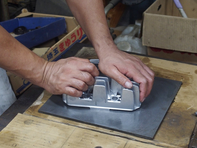 合わせ面になる部分は今までの修理経歴の「傷」「バリ」「経年変形」があります。チェックも兼ねて面を平面と擦り合せ面出し、洗浄を行っていきます。