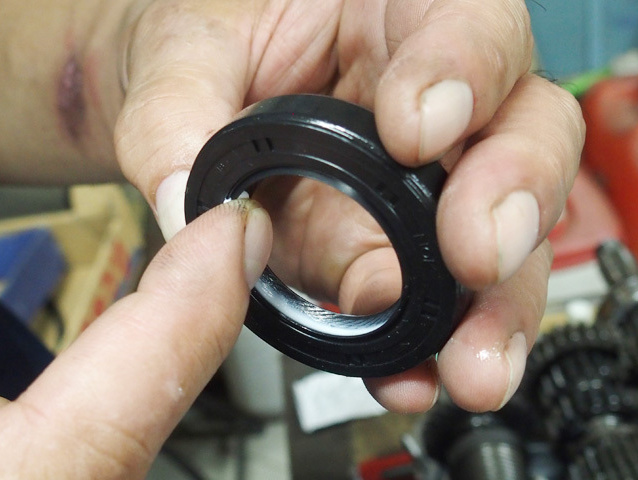 アウトプットシャフトオイルシール及びOリング。Oリングをピックなどで奥まで丁寧に押し込んだ後に、